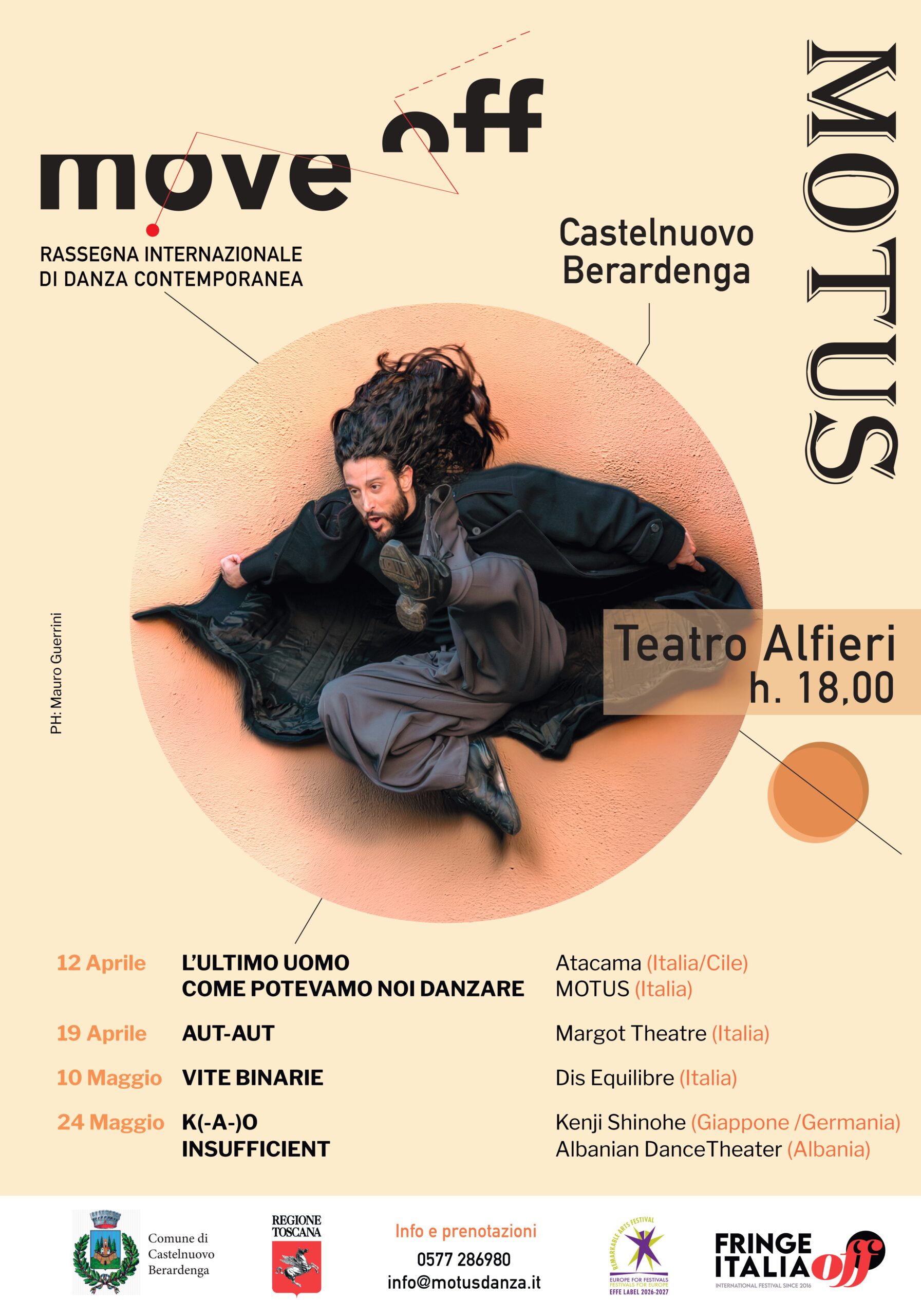 Dal 12 Aprile al 24 Maggio riparte, al Teatro Comunale Vittorio Alfieri di Castelnuovo Berardenga, la Rassegna Internazionale di Danza Contemporanea Move Off, diretta dalla Compagnia MOTUS e organizzata in collaborazione con il Comune di Castelnuovo Berardenga.